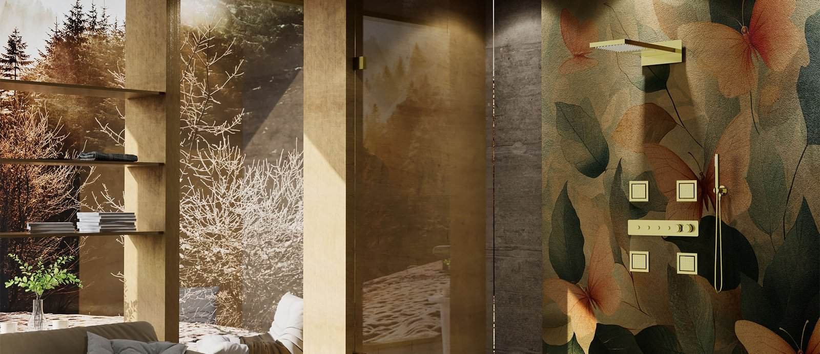 Thermostatic Brushed Gold Luxury Shower System – Rainfall & Waterfall & Body Jets & Handheld